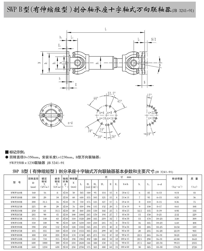 瑞安市寶德隆機(jī)械配件有限公司提供SWP B型(有伸縮短型)部分軸承座十字軸式萬(wàn)向聯(lián)軸器具有拆裝方便,快速安裝等特點(diǎn),廣泛用于連接/固定輪轂孔和零件的軸,例如齒輪,錐齒輪,鏈輪,葉輪,凸輪,皮帶輪和飛輪等軸的聯(lián)結(jié)固定,咨詢電話:18906872378