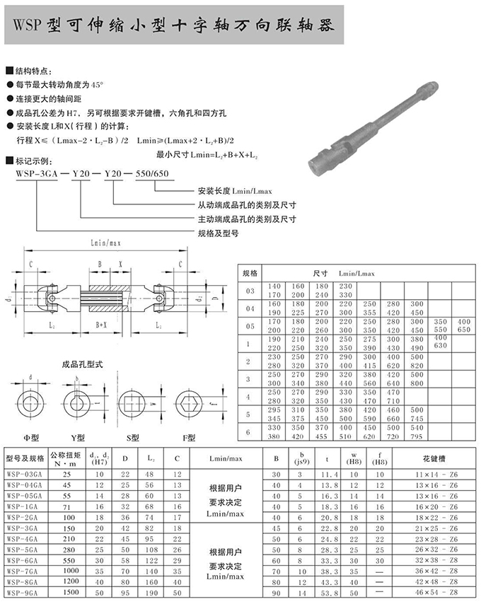 瑞安市寶德隆機(jī)械配件有限公司提供WSP型可伸縮小型十字軸萬向聯(lián)軸器具有拆裝方便,快速安裝等特點,廣泛用于連接/固定輪轂孔和零件的軸,例如齒輪,錐齒輪,鏈輪,葉輪,凸輪,皮帶輪和飛輪等軸的聯(lián)結(jié)固定,咨詢電話:18906872378